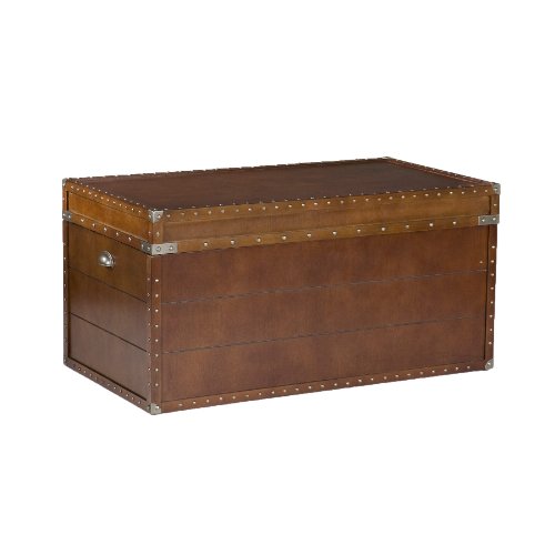 Crafted with a replicated antique look, this steamer trunk coffee table is ideal as a decorative, yet functional accent. Whether it's placed in your living room or bedroom, the convenient storage under the lid is sure to help clear the clutter. The rich walnut finish is accented with antique brass rivets along the trim. The lid opens with the help of progressive hinges that prevent slamming. This classic styled trunk is a great solution for your home.